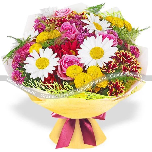 Прикосновение страсти - букет из ромашек,роз и хризантем