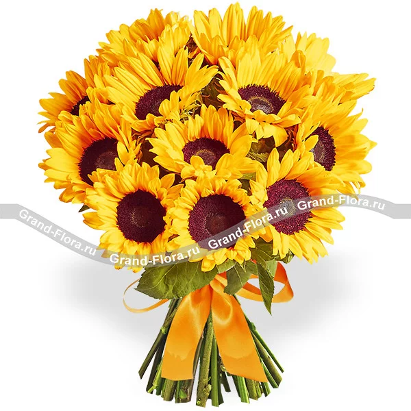 9 подсолнухов: подсолнух декоративный - 9 шт, лента.